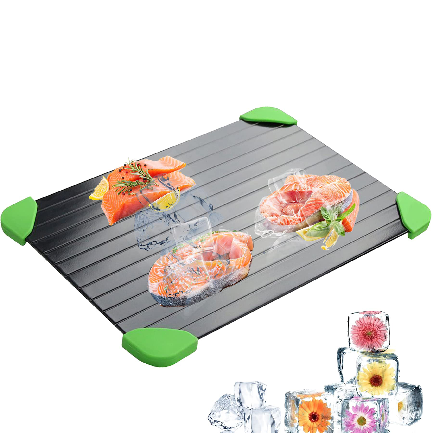 This defrosting plates can rapidthaw fozen meat ,fish,chickens.Usually, it only takes 30 to 60 minutes to complete the defrosting.The smaller the thickness of the food, the shorter the time required to defrost.instead of using microwave, electricity, or heat to thaw food, defeosting food safely and naturally be as a healthy type, while keep the nutrients and vitamins of the food.